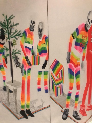 V obrazech Jiřího Petrboka se prolíná reálný svět s imaginární obrazotvorností. Snoubí se zde psychická i fyzická zkušenost celé společnosti a jednotlivce zároveň. Neutrální architektonický prostor, ve kterém se děj obrazu odehrává, je snadno čitelný, avšak dominantní postavy jsou zcela smyšlené a absurdní. Je to hra na něco, co na první pohled může existovat v realitě, ale ve skutečnosti neexistuje. Je to autorova záměrná hra s diváky. Petrbok pracuje s principy koláže, kdy ve zdánlivých instalacích – objektech používá jako materiál cizí díla různých autorů, mimo jiné právě bratrů Chapmanů.