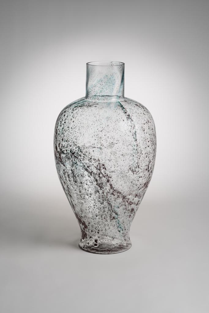 Hutní plastika, foukané sklo - V každé z váz je jiný kov - železo - šedé; měď - zelená; mosaz - zelenomodrá.
